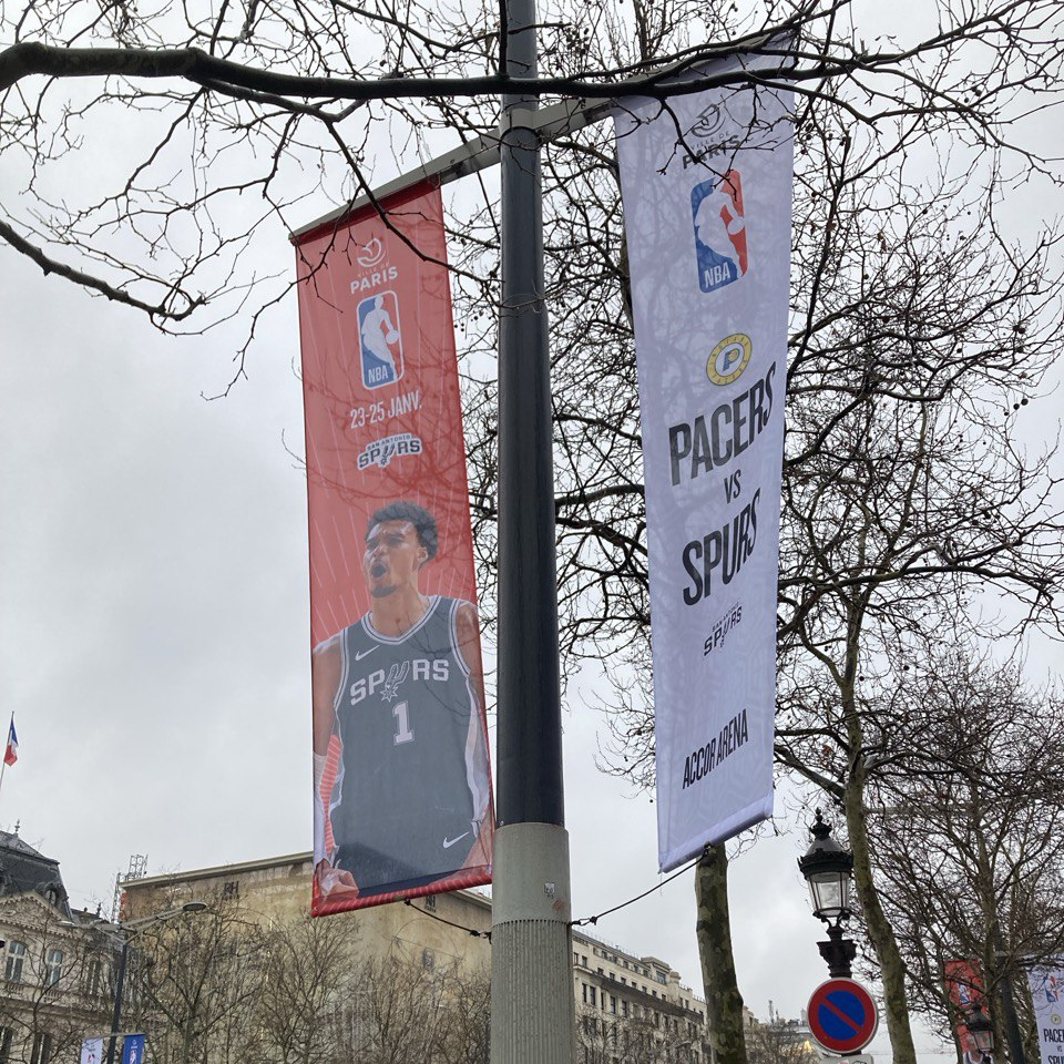 “MVP! MVP! MVP!” è il coro più spesso partito dalla AccorArena e dedicato a Victor Wembanyama. Certo, niente di troppo sorprendente, è l’idolo di casa e probabilmente molti occasionali presenti all’arena non conoscono nemmeno grossa parte del roster di San Antonio. Ma è solo la punta dell’iceberg. I suoi numeri straordinari dimostrano come abbia fatto schizzare alle stelle la visibilità NBA sui social media e i ratings delle Global Games, rendendo piuttosto chiaro il motivo per cui si sia scelto di investire su di lui già anni orsono, trasmettendo le gare del Metropolitans 92 su NBA TV nel corso di tutta la stagione 2022/23. Alla AccorArena, a Parigi, in Francia e persino in Europa, chiunque segua un minimo la pallacanestro conosce Victor Wembanyama. Anzi, anche i profani lo hanno visto da qualche parte, dal momento che abbiamo trovato l’Avenue des Champs-Élysées tempestato di sue immagini, nonché del faccione di compagni e avversari: