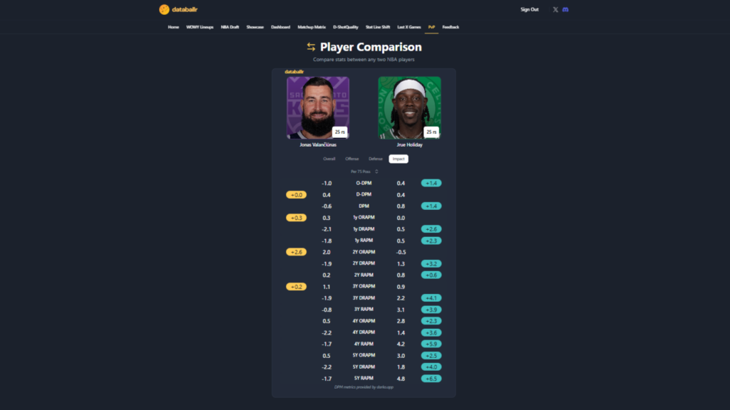 Basta davvero poco, i tool gratuiti per comparison o analisi incrociata di dati avanzati esistono a bizzeffe (per chi fosse interessato: Databallr, nba rapm, Dunks&Threes, Crafted NBA, basketball-reference anche nella versione gratuita di Stathead), e si tratta di siti obbligatori da utilizzare prima di esercizi di questo tipo anche solo se si dovesse imbastire una live Twitch per ridere con gli amici. Quello che vedete di seguito, per esempio, non sarebbe successo.