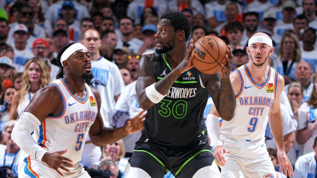 L’ex New York Knicks è stato l’MVP nei primi due turni Playoffs, e in generale da marzo in poi, dei Minnesota Timberwolves, alla pari con Anthony Edwards. Ha chiuso il primo turno contro i Lakers a 22.6 punti di media con un clamoroso 39.63% su 5.6 triple tentate a partita, nonostante nelle due precedenti esperienze in post-season girasse al 34.4% dal campo e al 28.3% da fuori. Si è dimostrato il maestro di un’arte ormai perduta, la bully ball, contro i Golden State Warriors, facendo sentire il peso del proprio corpo in più di un’occasione anche contro un difensore roccioso come Draymond Green, alzando nelle semifinali la media punti a 25.6 con il 63.5% da due. Negli ultimi sei quarti – circa, visto che è stato tenuto in panchina nel quarto periodo di Gara 2 – tutto questo, anche per merito di OKC, è stato cancellato.